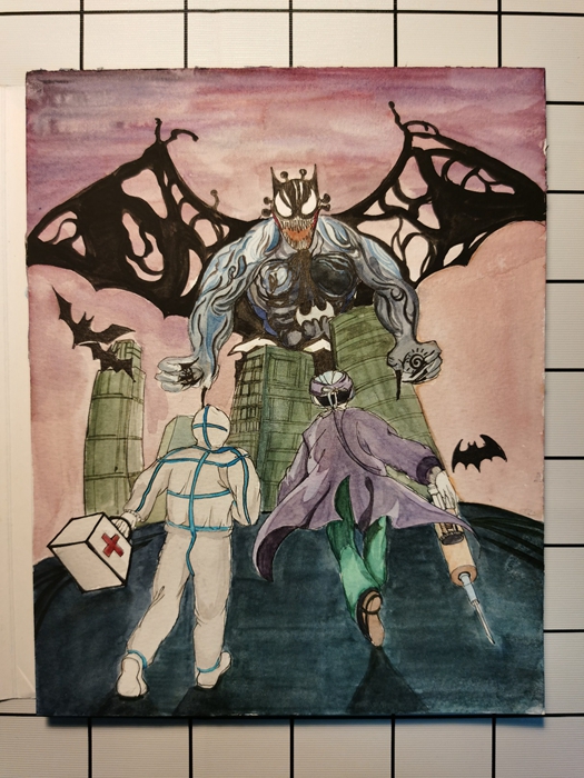 而眼下,疫情急。逆行者,英雄气。赞白衣天使,胸怀大爱。救死扶伤为己任,临危受命担道义。似钟馗、打鬼降妖魔,撼天地。