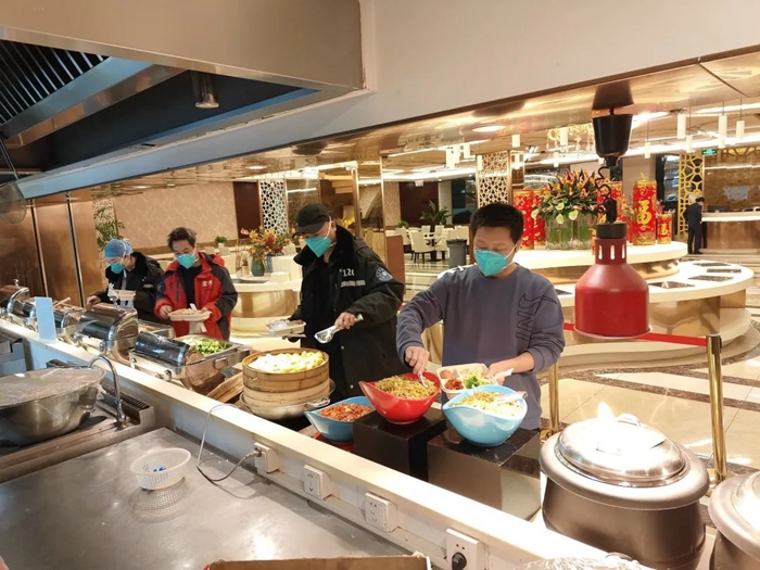 为加强工作协调,美居酒店开通24小时微信专班服务,各部门负责人与医疗队负责人随时对接联络,确保医护人员各项需求及时得到满足;为了做好“120”医疗人员的后勤保障,酒店餐饮部特地为医护队定制了每日营养菜单,根据队员的口味和要求进行适时调整,确保每一餐菜肴的卫生、健康和美味;为了保障队员们每天6时准时出发,厨师团队凌晨时分就开始忙碌备餐,早晨5点半就已将热气腾腾的营养早餐准备好;客房部7名楼层服务员则早早上岗,每天都在医疗队员中午用餐之前,全部完成200余间客房的清洁打扫工作,保证队员们回来后有个洁净温馨的空间。