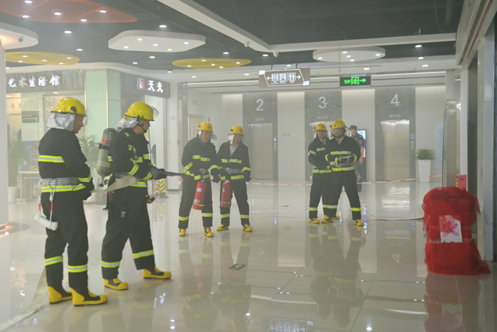 北京化工集团安全总监马明荣对此次演练进行了现场指导,集团所属二级企业负责人现场观摩,并对演练予以点评。华腾新天地商场微型消防站消防员、物业人员等30余人参与演练。