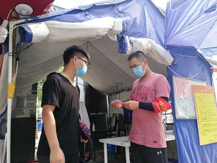 若有战!召必回!下沉干部们再次于6月15日驰援西红门镇。西红门镇紧邻新发地,大量新发地从业人员就住在乐鱼leyu 值守的四个村子,西红门镇更是直接被列为了高风险地区,但是面对切实可见的危险,大家没有退缩!在抗疫一线顶着夏日的骄阳,履行职责,勇于担当,直面危险,同当地的社区干部们一起为大量新发地从业人员做核酸检测,充分展现了极高的政治责任担当。