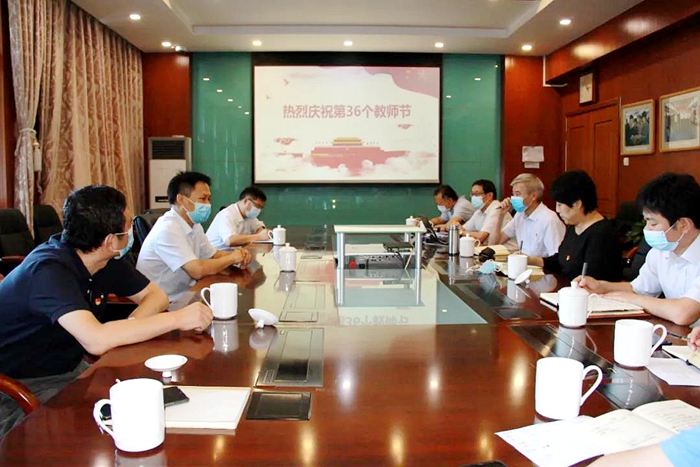 在第36个教师节到来之际,吴瑞峰代表北化集团党委,向学院全体教职员工祝贺节日,希望全体教职员工认真学习贯彻习近平总书记重要讲话、指示精神,不忘立德树人初心,牢记为党育人、为国育才使命,努力办好思想政治理论课,以实际行动积极践行伟大抗疫精神,更好地贯彻落实党的教育方针。全体教师要以“办好学校,责任在我”的高度责任感和使命感,充分发挥积极性、主动性、创造性,一棒接着一棒跑,每一棒都要跑出好成绩,争取更大的进步,赢得更大的荣誉,把学校建设得越来越好。