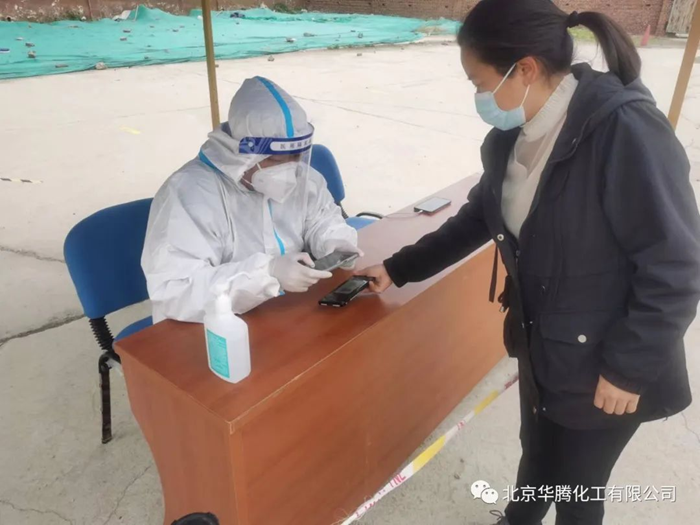 5月23日以来,华腾橡塑公司职工柴立刚和高艳平作为北京化工集团派出的下沉干部,一直在通州区东惠家园一期社区门口执勤。根据社区疫情防控管理规定,禁止非本小区人员进入,快递、外卖都放到小区门口。柴立刚与高艳平负责在小区门口查验健康宝、测温,劝阻外来人员进入小区。