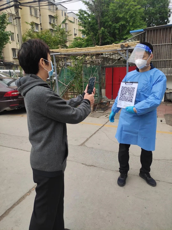 5月的天气,温度说升就升,每天2次4个小时的防护服穿下来,下岗时每每全身湿透,但我一点也不后悔,看着手机里每次录入600人、700人、800人等的信息时,内心升起一种无比的自豪,北京全员核酸检测里有我的一份汗水。