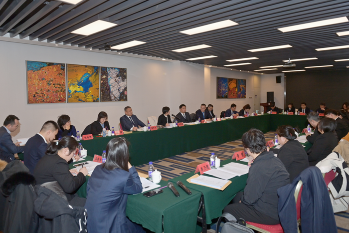 北化生科总经理申海成,化研院党总支书记、董事长杨传忠,华腾拓展党总支书记、董事长李泳,北搪公司党委书记、董事长周金阳作交流发言。