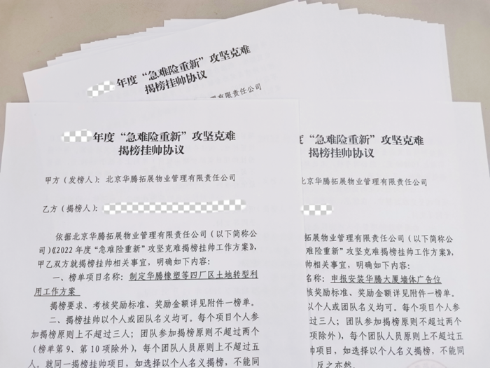 在华腾拓展年初开展的急难险重新“揭榜挂帅”活动中,华腾大厦团队所揭的榜,直指大厦写字楼经营开发的“痛点”“难点”。面对任务明确、目标清晰的榜单,这个团队心中有压力,但更有干劲儿和冲劲儿。“好像前面有一座堡垒,你的任务就是攻下它!”大厦员工说,“乐鱼leyu 得想办法,老办法不成,就得想新办法、出新招,现在乐鱼leyu 都在围绕揭榜转,团队的积极性都给调动起来了。”