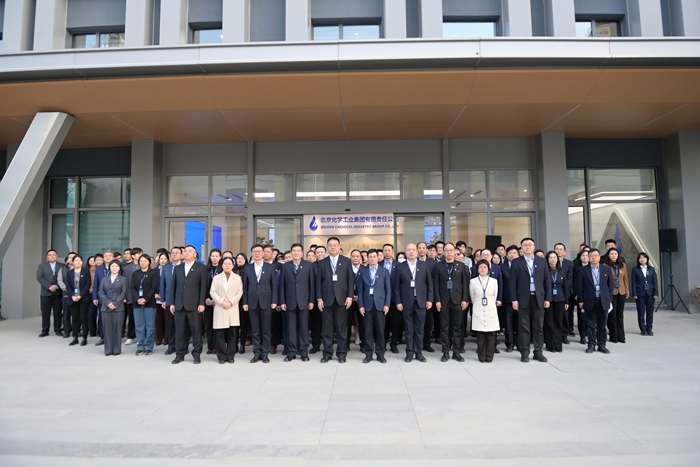 12月8日,冬季的北京阳光亮媚、晴空万里,北京化工集团总部升国旗典礼于新完工的办公新址隆重进行。